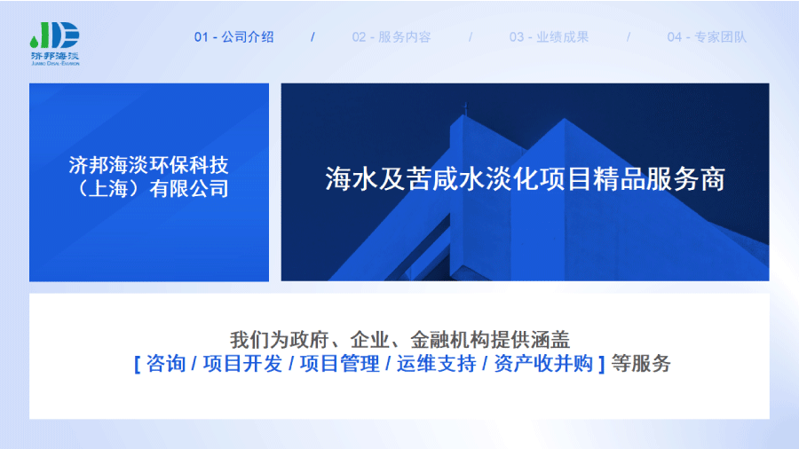 企業(yè)簡(jiǎn)介 組織架構(gòu) 子公司 - 濟(jì)邦國(guó)際有限公司 子公司 - 濟(jì)邦海淡環(huán)??萍?上海)有限公司 里程碑事件 分支網(wǎng)絡(luò) 服務(wù)行業(yè) 專業(yè)團(tuán)隊(duì) 九大業(yè)務(wù)領(lǐng)域 項(xiàng)目業(yè)績(jī) 出版叢書(shū) 行業(yè)影響